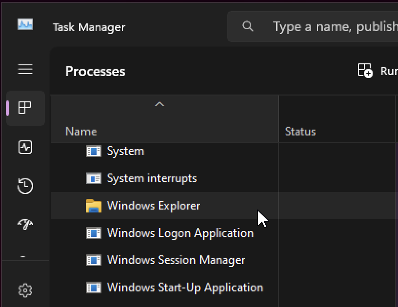 • On Task Manager, scroll down and find Windows Explorer under the Processes tab.